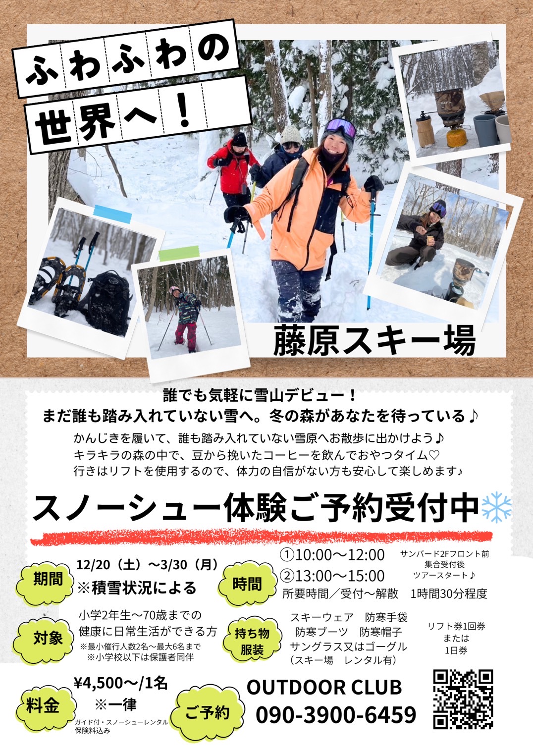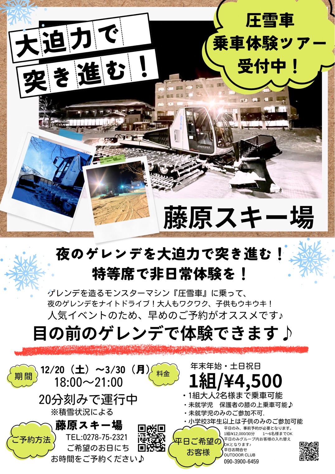 ※平日の圧雪車乗車ツアーに関しては、OUTDOOR CLUBさんのHPよりご予約ください。