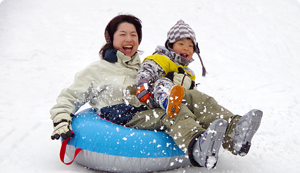 そり遊びやエアドームすべり台、宝探し、スノーストライダー(小型自転車)、チューブ、フリースペースなど楽しいアトラクションがいっぱいです。